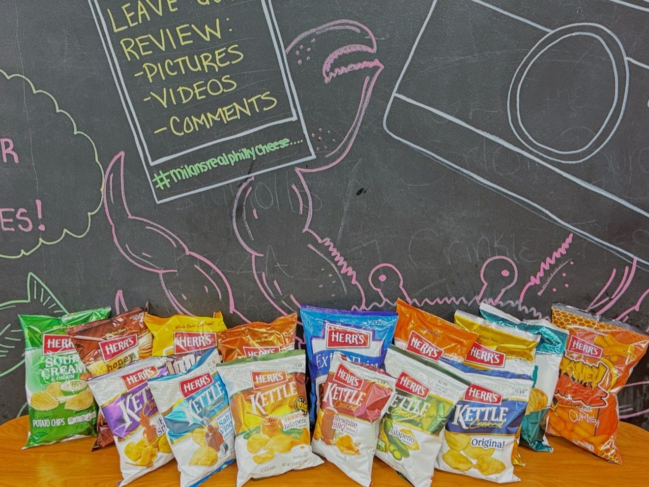 Various chips options such as plain, BBQ, sour cream, salt and vinegar, etc.